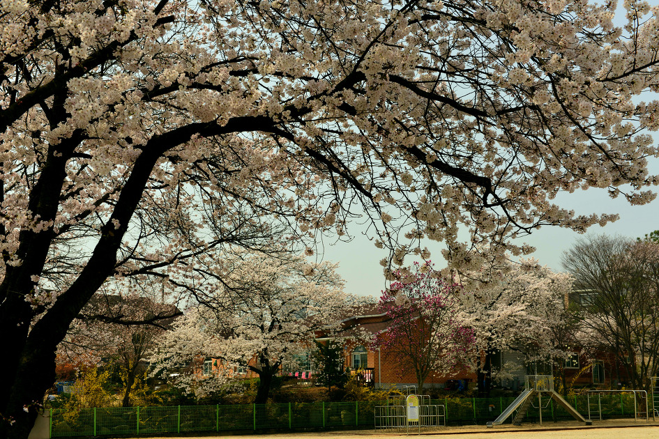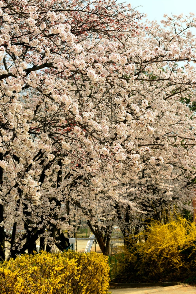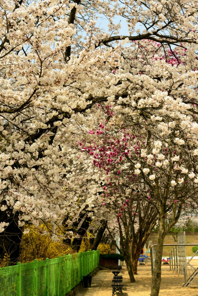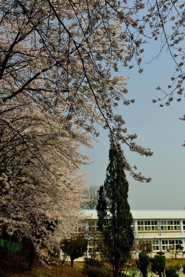 오래된 전통을 지닌 학교이다 보니, 학교 담장을 따라서 심은 왕벚나무가 이젠 고목이되 여주의 봄을 빛내고 있습니다.