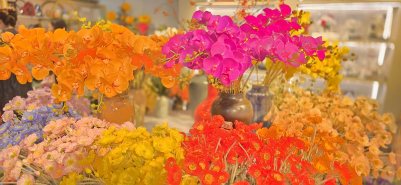 안 식구가 이 꽃들은 스프레이 염색약으로 가공한 꽃 들이라네요.