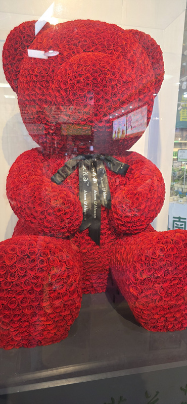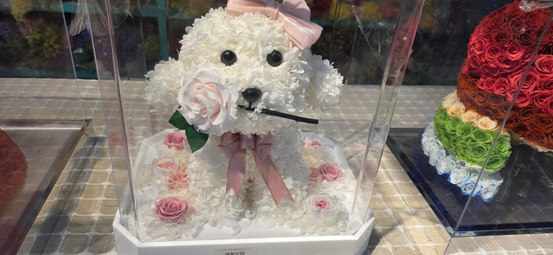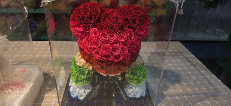 장미 생화로 장식한 곰돌이.