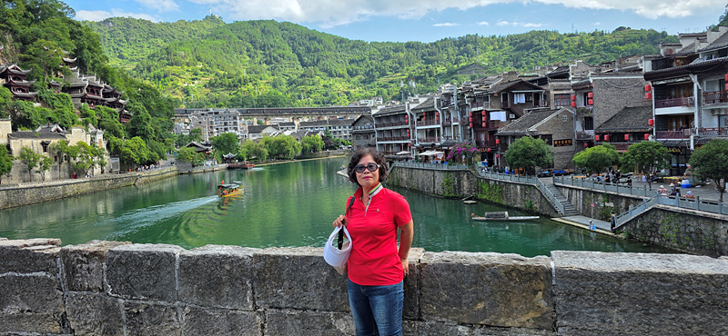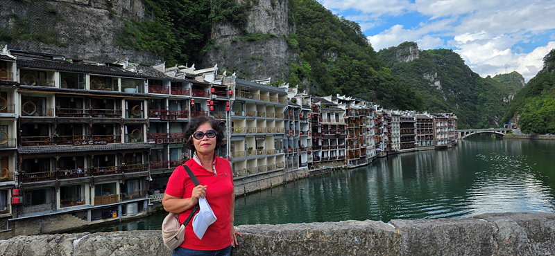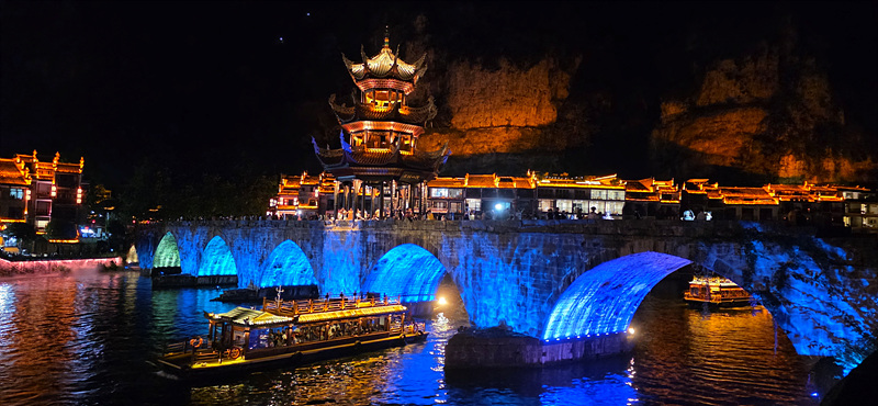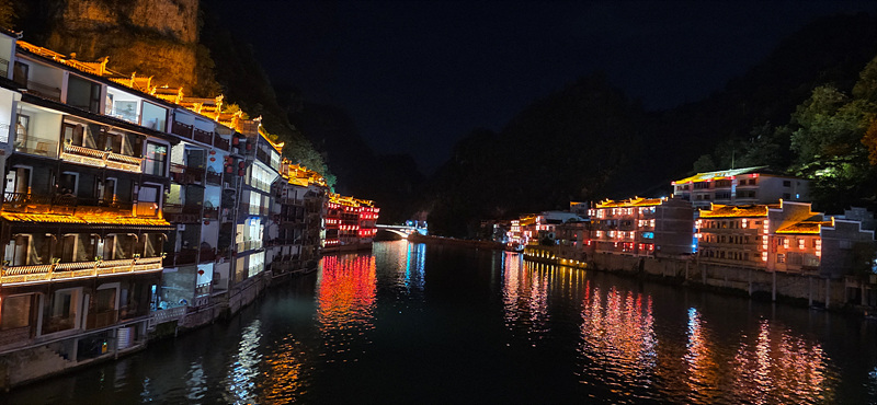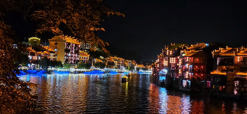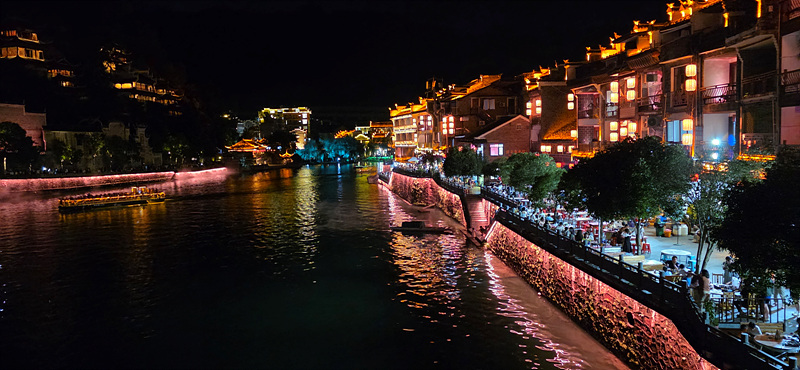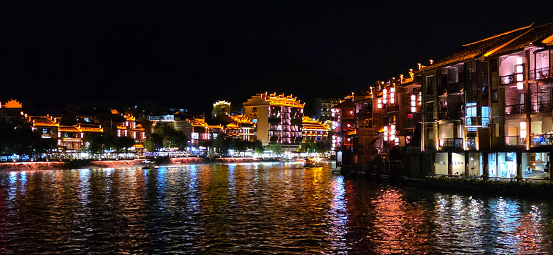 우양허 강변의 건축물의 휘황한 조명으로 특히 야경이 아름다운 고진입니다.
