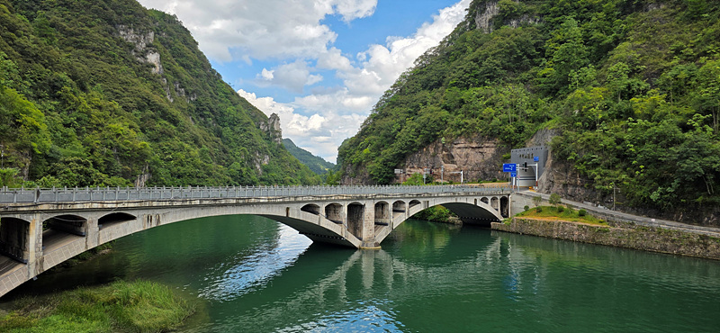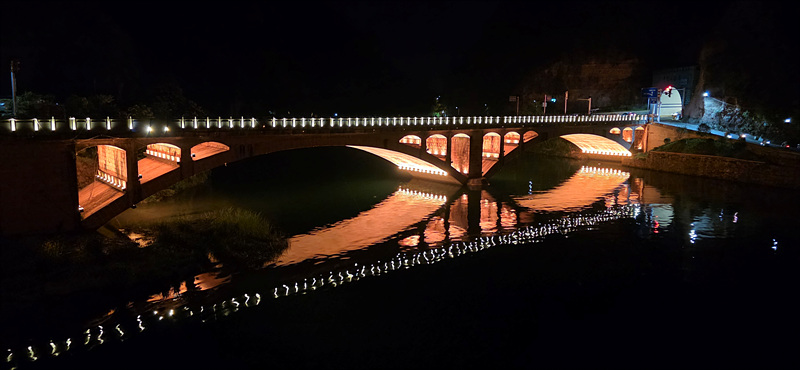축성교란 석교 중간에 멋진 3층 누각이 있고 다리를 건너면 청룡동이란 도교 사원이