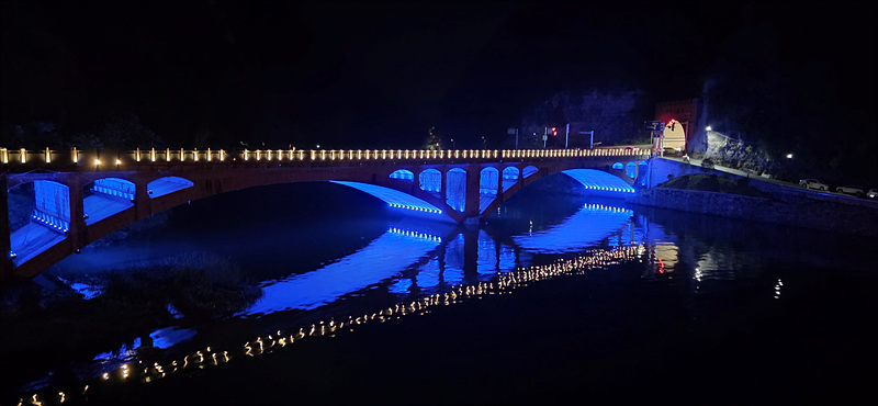 S자로 흐르는 곳 저곳에서 밤에 공연을 합니다.